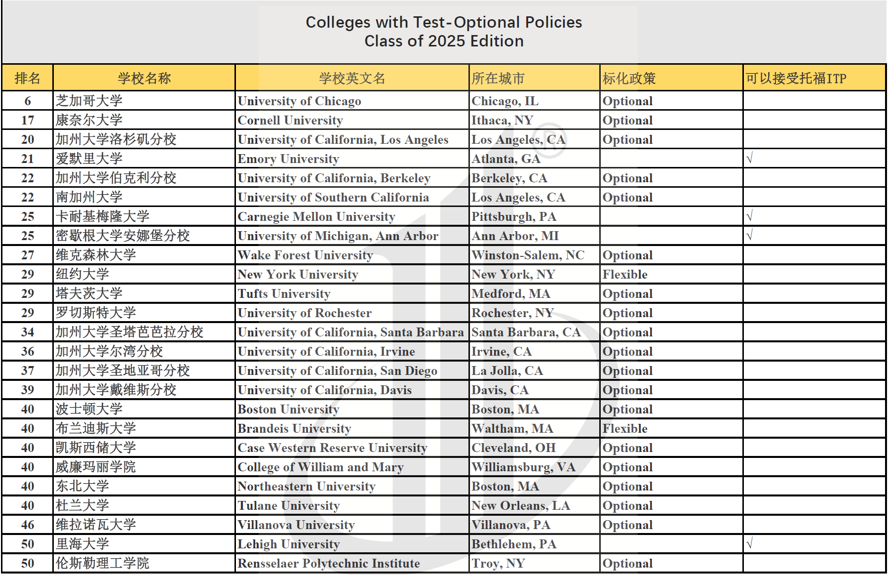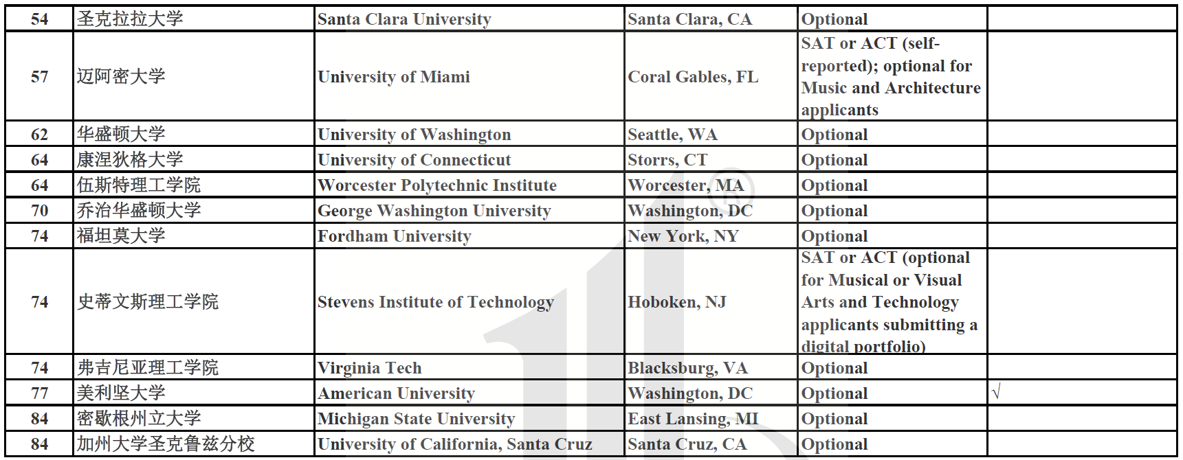 疫情期间,目前sat/act可以optional的美国学校汇总: