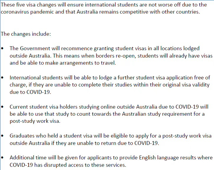 澳洲2020.7.20今日最新公布对留学生利好政策: