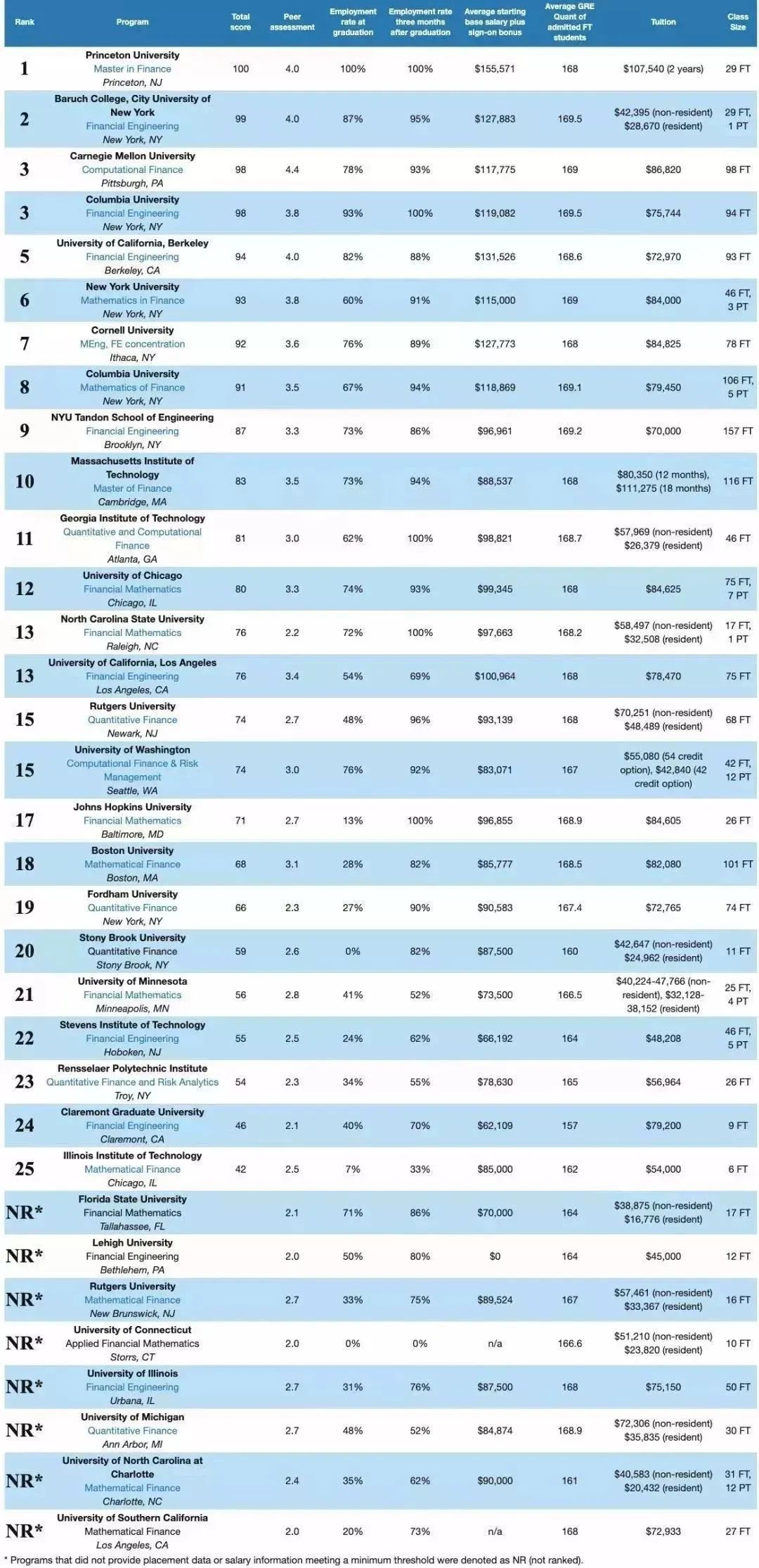 附QuantNet2020美国金工金数院校排名:
