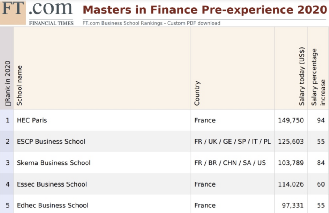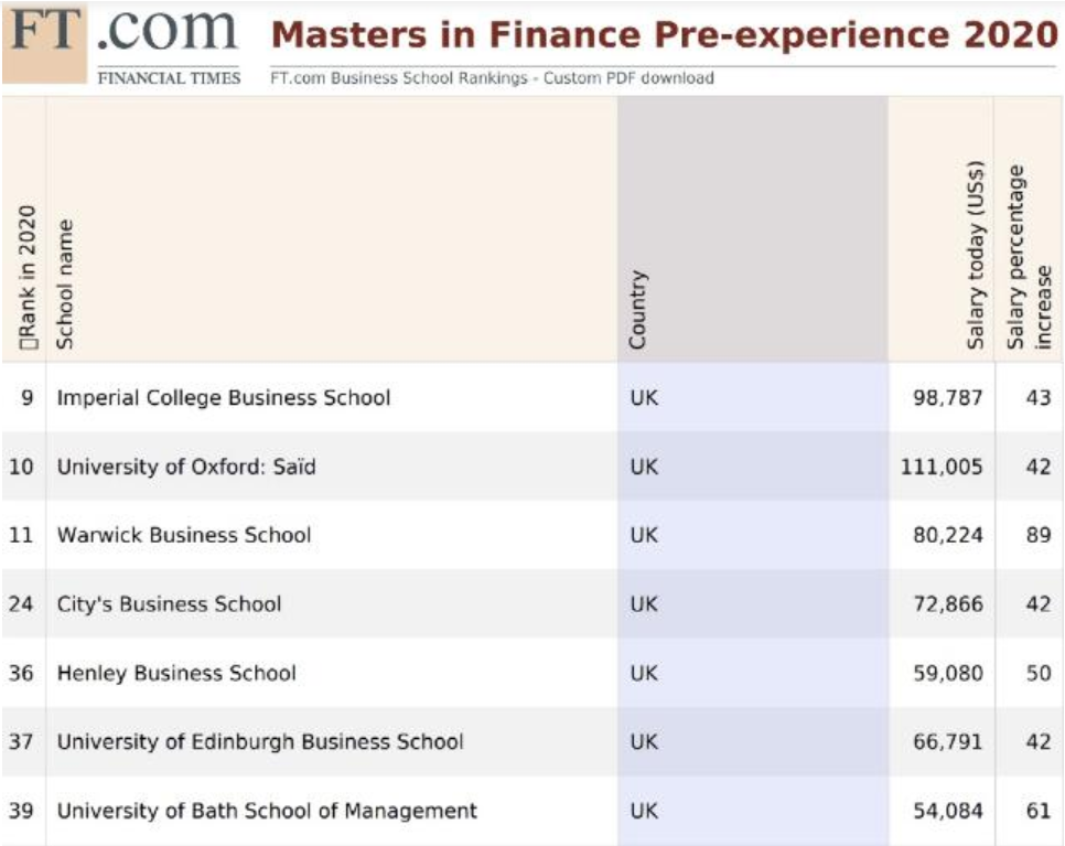 近日,《金融时报》(Financial Times) 发布了2020年全球金融硕士排名!