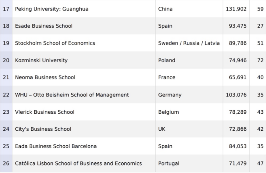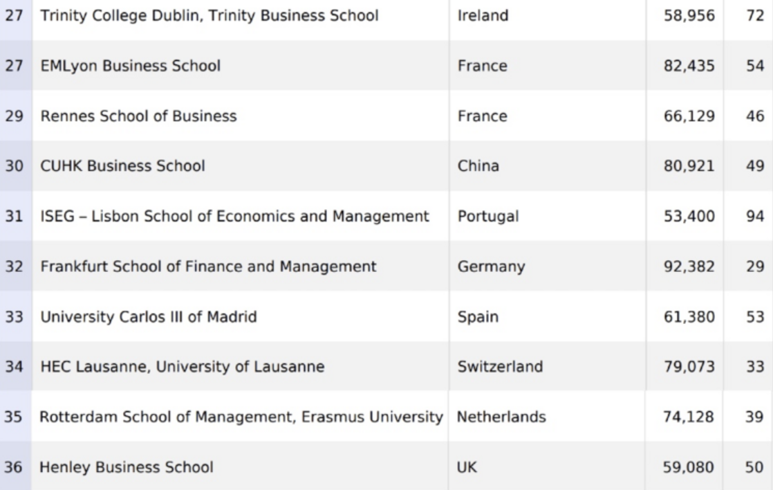 此次FT金融硕士排名共59所商学院上榜。所有参与FT商学院排名的院校需符合: