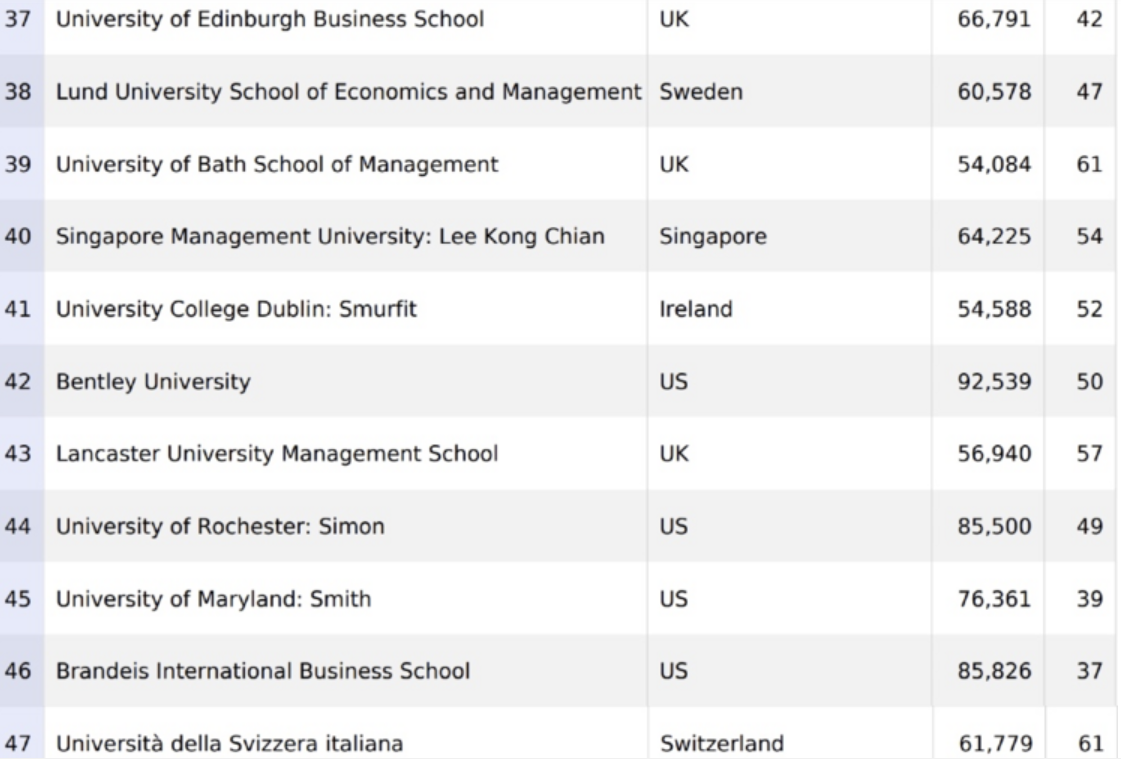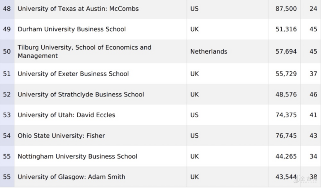 无需工作经验金融硕士排名共56所商学院上榜,英国商学院占13所。