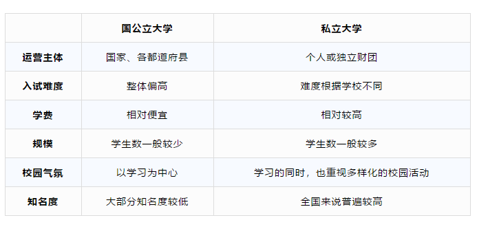 但要注意的一点是,私立大学的入试一般前期(夏季、秋季)和后期(冬季)都有,而国公立大学的入试一般只放在后期(冬季)。如果想要入读国公立,但又不确定自己能否考入的话,建议在前期的时候,先报考一所私立大学用来保底。