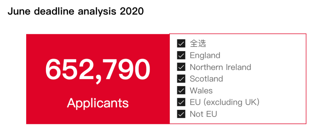 根据该报告,截止2020年6月30日,总共有652990位学生通过ucas申请了英国本科院校,其中,中国大陆学生人数为24430人,相比2019年上升了23%,达到了有史以来中国学生申请ucas人数的历史新高。