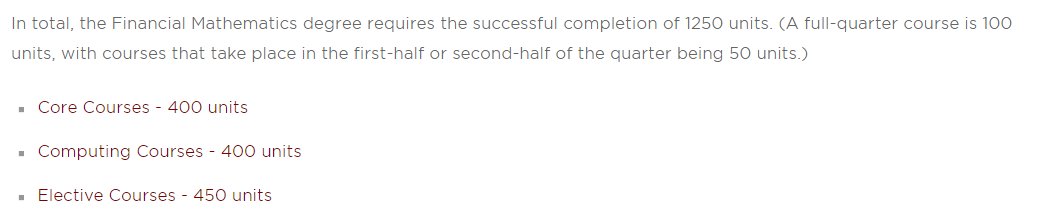 课程覆盖范围:概率论,风险管理,计算机金融,金融统计学,经济学话题等等,从课程设置可以看出,芝加哥大学的金数专业是把金融,数学和计算机相结合的综合性项目。