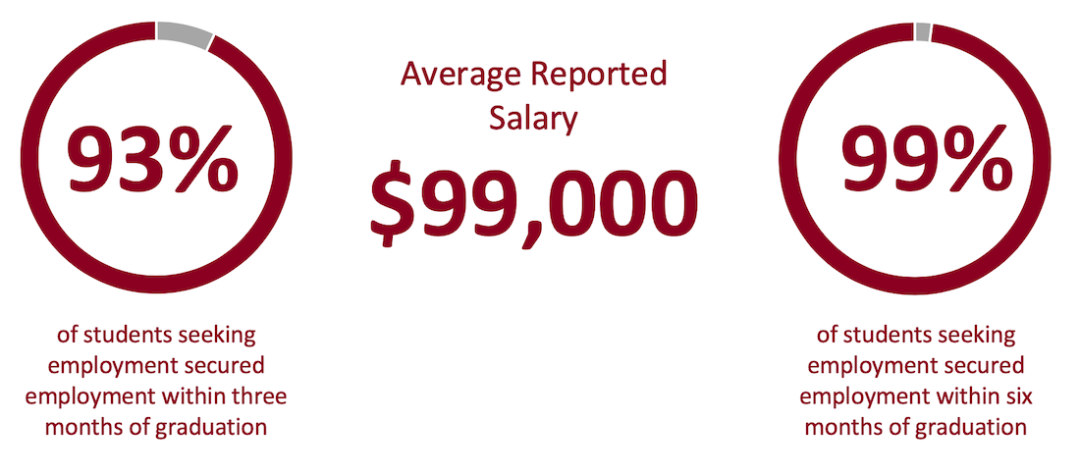 99%的应届生在毕业六个月内找到工作,平均起薪是9万9美金。