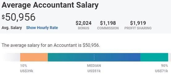 根据PaysCale数据显示,初级会计师的平均薪资为50,956美元。