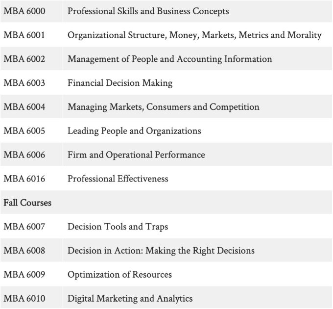 其余课程(如果有的话)可以从哥伦比亚大学的其他研究生院修读,包括:国际和公共事务学院,法学院或艺术与科学研究生院。