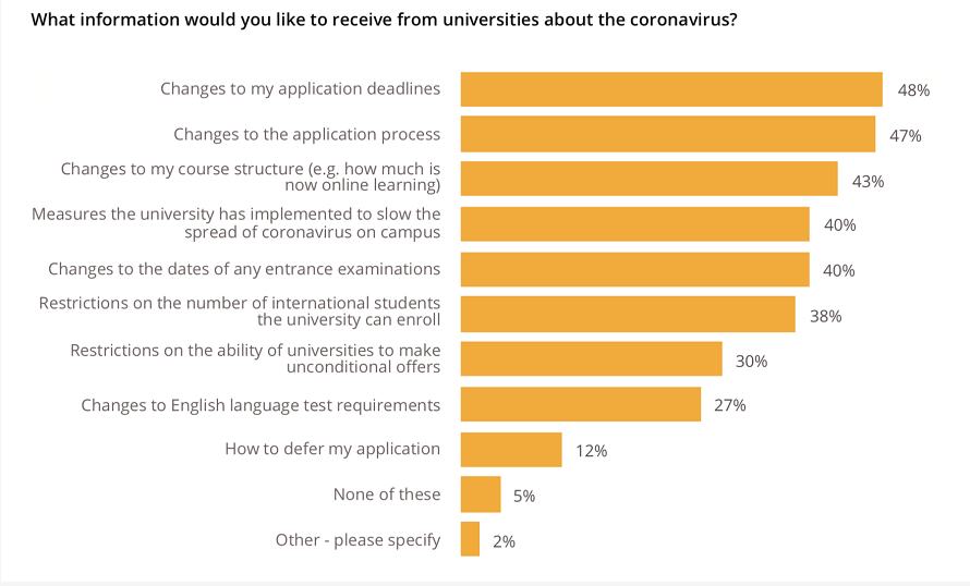 QS询问了未来的国际学生冠状病毒是如何改变他们的留学计划的,留学生是否希望推迟或推迟他们的学业,决定在另一个国家学习,不再计划留学,或其他事情。