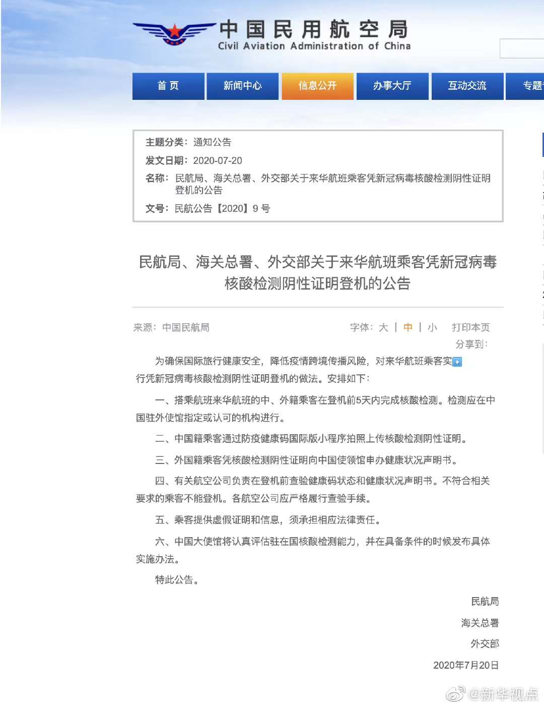 民航局出来一项新规定: 要求所有航班提供核酸检测证明!