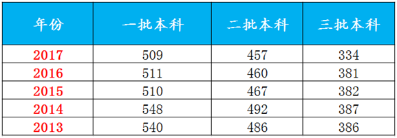 近五年陕西各批次录取控制分数线