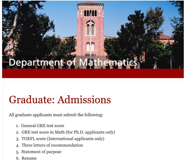 南加大的Mathmatics MS设于Dornsife文理学院下,其核心性研究生课程包括代数、实数分析、数值分析、线性和非线性泛函分析、代数拓扑、组合论、微分几何、常微分方程、偏微分方程、控制理、,数学金融和计算分子生物学等。此项目还定期提供专业领域的研讨会课程。