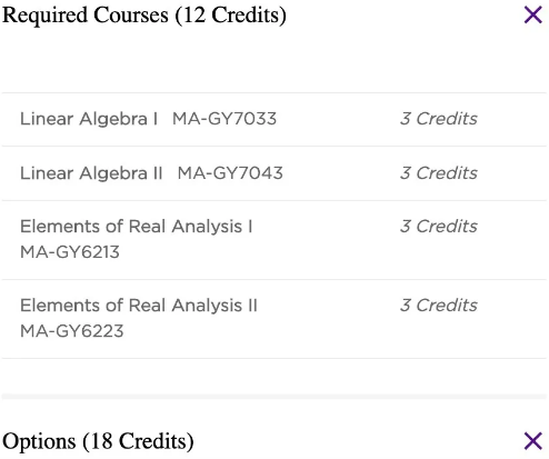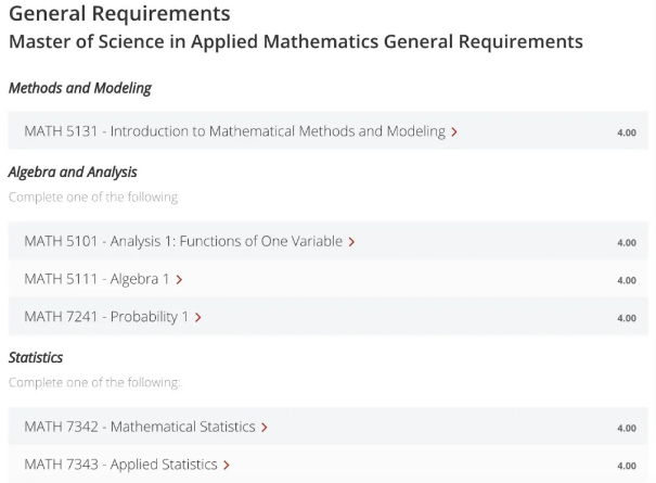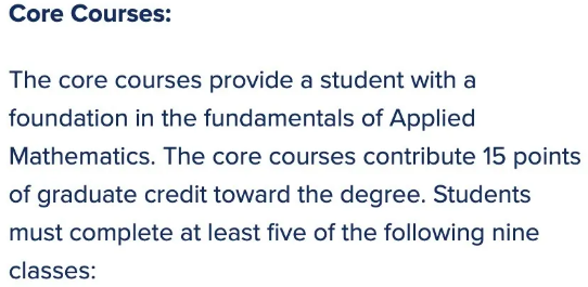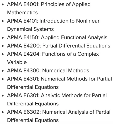 数学方向的研究生项目有着大量先修课的要求,包括:高级微积分、线性代数、复杂变量、偏微积分和常微积分方程、概率论等相关课程。