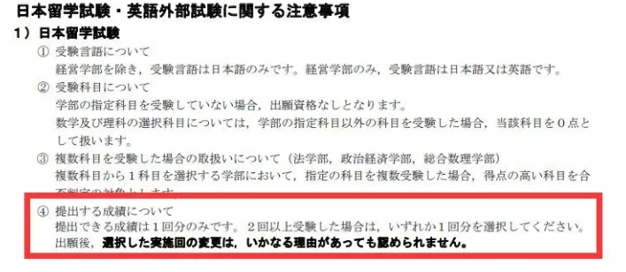 与之前的要项相比来说,明治大学调整了EJU成绩的使用次数。