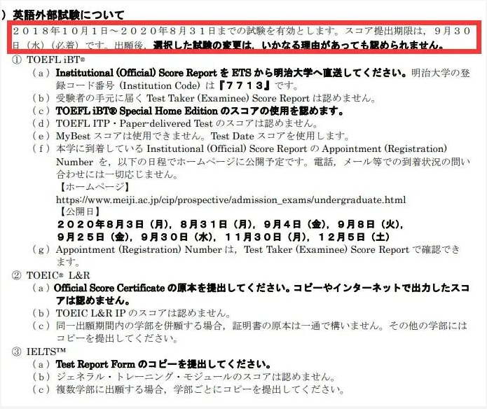上智大学的以往的出愿要项里面,EJU成绩是必须要提交的一项材料,可以提交前一年的成绩:如19年6月或者11月中的任意一次。