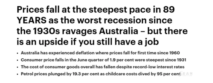 根据Daily Mail的报道,近期,澳洲物价出现了有史以来最大的季度跌幅。