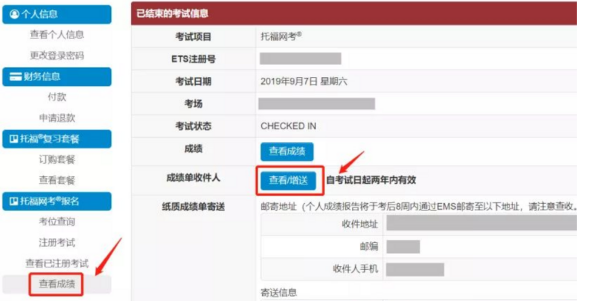 · 选择已结束的考试信息中想要递送成绩的场次,点击“查看/增送”。