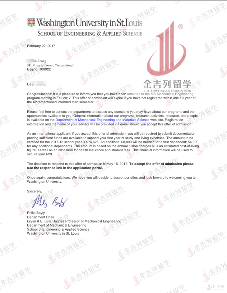 2017年秋季入学的张同学,十分满意的得到了世界名校圣路易斯华盛顿大学的offer,这和学生自己的努力及父母的支持分不开,更重要的是,申请顾问老师的专业、耐心的指导为此次成功申请起了推动作用。