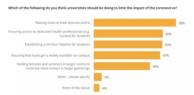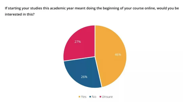在本次报告中,QS也增加了一个新的调查结果,留学生们是否有兴趣在即将到来的学年以网课的方式进行。
