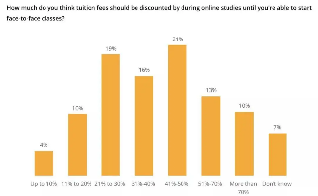 另外本次报告中,有77%的受访者认为既然以网课的方式进行,那么学费就应该得到减免。