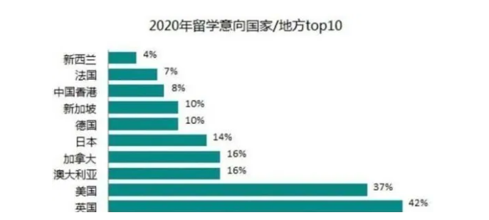 另外,考虑到疫情防控、政策稳定性、两国关系等诸多因素,原本最受关注的美国留学市场从长线来看不被看好,而英国、澳洲等留学目的国的热度则逆势上升。