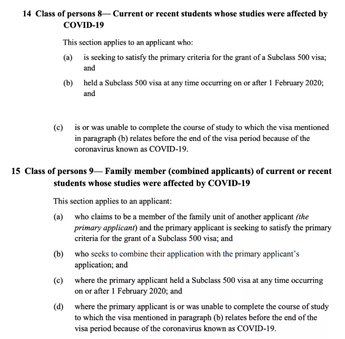 在2020年2月1日或之后,持有500类学生签证因疫情无法在签证有效期内,完成原本注册课程的学生,可以免去续签的签证费用。不仅主申请人可以豁免,同时作为family member的副申请人满足相应的条件,也可免去续签的签证费用。
