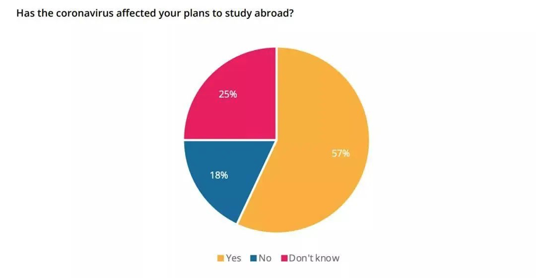 在QS之前的报告中,47%的受访者打算推迟留学,13%的受访者打算出国留学,7%的受访者不再想出国留学。