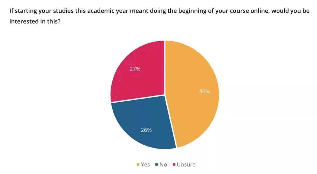 在本次报告中,QS也增加了一个新的调查结果,留学生们是否有兴趣在即将到来的学年以网课的方式进行。