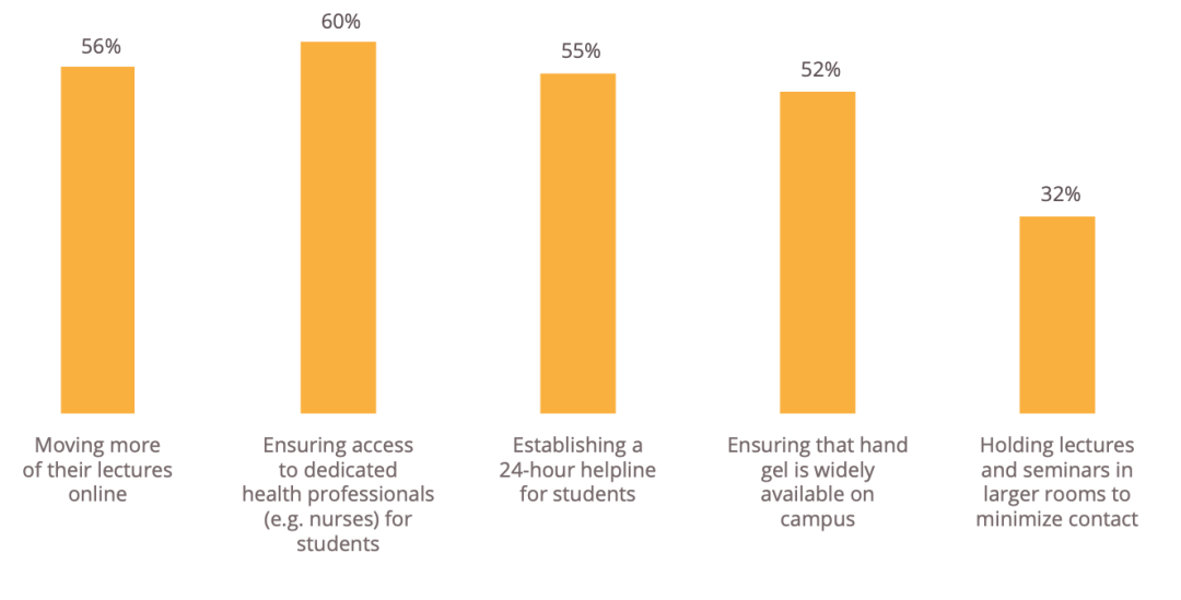虽然其中一些措施目前可能并不适用,但QS认为,一旦校园慢慢开学,各院校应考虑引入更多此类措施。