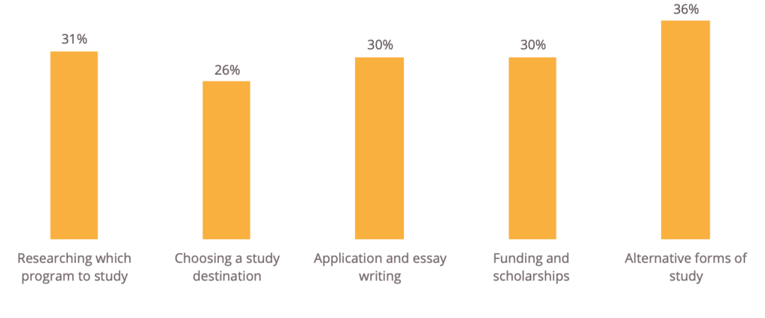 其中超过三成的人比较关注:项目选择、文书撰写和奖学金。 而有36%的人更想要了解高校学习方式的多样性 。