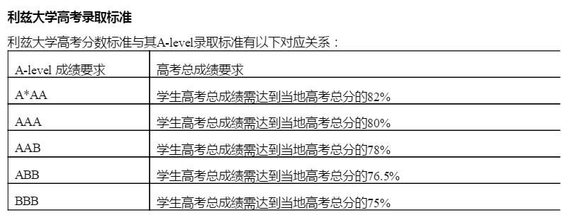 - 利兹大学高考录取标准会依据中国大陆各省份高考政策变化而变化,请参考利兹大学官网以获取最新录取标准。**