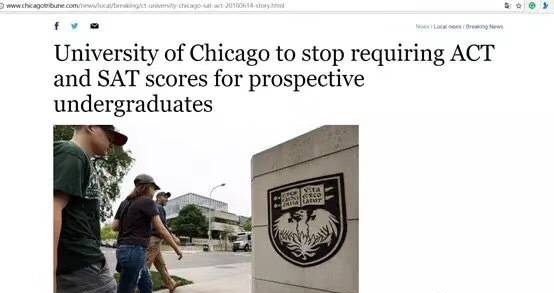 重磅突发! 芝加哥大学本科招办主任Jim Nonorf宣布,申请2019年及以后入学的本科生不需要提交SAT或者ACT成绩!! 芝加哥大学是USNEWS综合大学排名前20大学中第一所宣布不要求申请者提交SAT或者ACT成绩的大学。该政策使得申请者,尤其是特别擅长考试的中国学生有点不知所措。