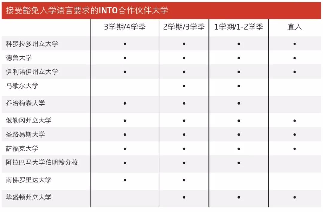 INTO 所有合作大学现在起接受使用高考成绩替代雅思或托福,豁免入学语言要求,申请大部分的国际大一课程以及直入大一课程。具体适用课程请看下表。