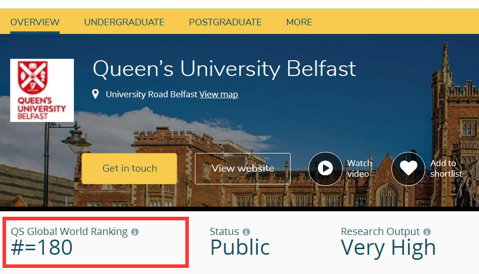 她是北爱及爱尔兰地区的顶尖高校,更是罗素大学集团成员。 2019年 全球大学排名前 180。