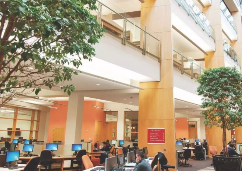 McClay图书馆作为校图书馆拥有藏书上百万册,并且荣获英国图书馆设计大奖,贝尔法斯特绚烂阳光通过透明的天井式设计洒落在图书馆内的每一个角落。阅读区,自习室,小组讨论室合理分布在每一层充分满足学生的各种学习需求 。