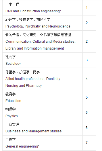 卡迪夫大学新闻传播学院是欧洲首个新闻学院,其传媒类专业位居英国前3,全球第23位,被评为全球十大新闻学府之一。建筑学院位居全球第46位;城市规划连续十年占据英国第1,卡迪夫医学院是欧洲最大的医学院之一,制药科学位居全球第12位;生物科学位居全球第32位。