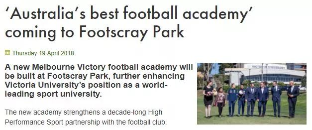 据维多利亚大学官网最新报道,墨尔本胜利足球俱乐部(Melbourne Victory FC)将在VU Footscray Park校区兴建一所 澳洲最佳的足球学院 。而这一举措也将进一步 提升维多利亚大学作为世界领先的体育大学的地位 。