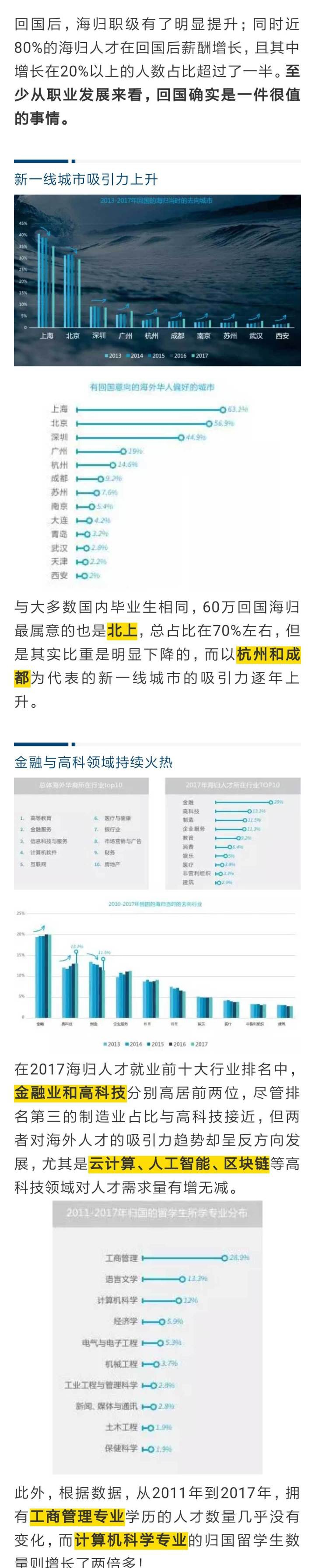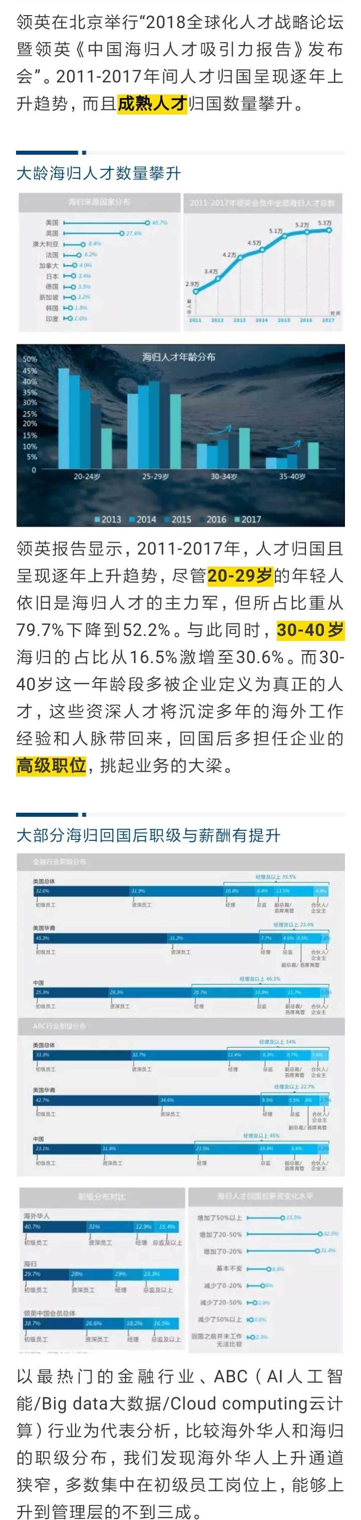2018《中国海归人才吸引力》报告:大龄海归数量攀升,CS专业人数增加两倍