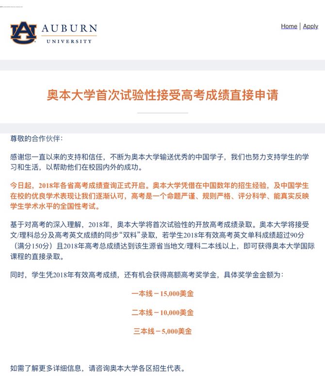 奥本大学不仅接受高考成绩作为申请材料,对于优异的高考成绩,学生还有机会获得高额奖学金。