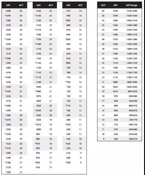 2018年SAT和ACT分数对照表