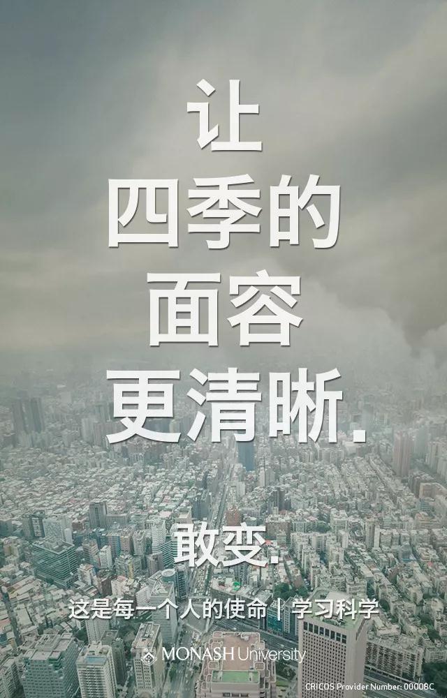 治理雾霾绝非一蹴而就之事,结合技术手段,科学治理是更长远、高效的解决方式。而我们每一个人,都可以在日常生活中为此作出点滴努力与贡献:少用一次性物品,尽量自带饭盒/杯子,日常节能减排,多多绿色出行… 每一个人的微小努力,可以造就大大的改变。携手蒙纳士大学,一起敢变