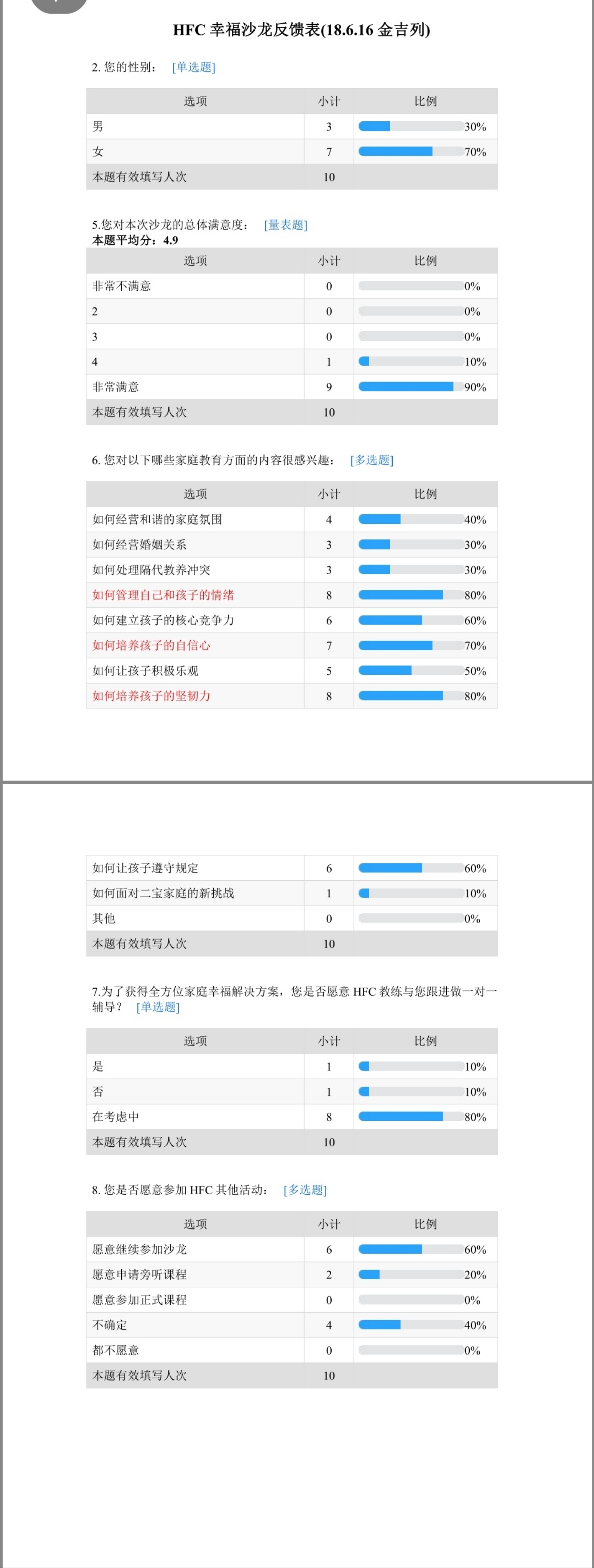 活动结束后,我们随机抽查了10位家长进行反馈调查,结果如下: