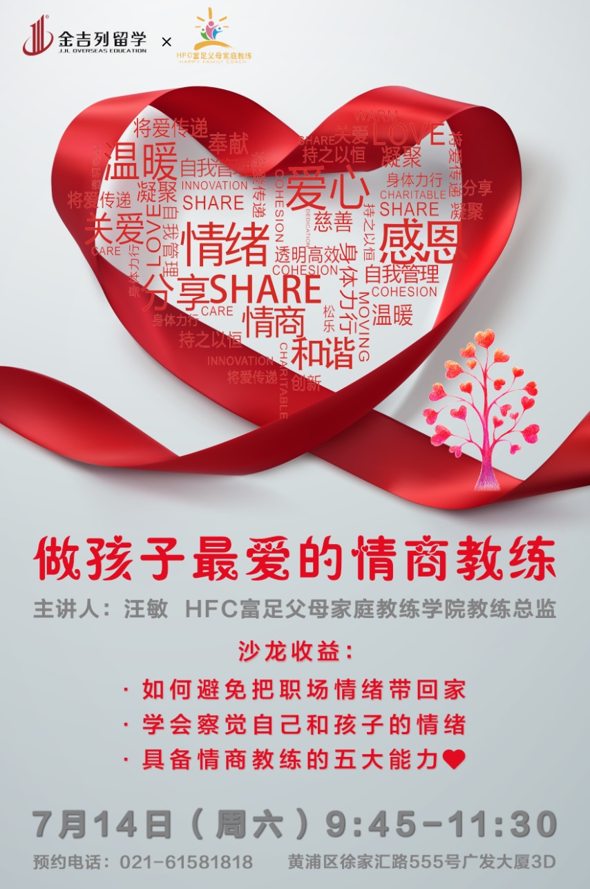 话说,万物至此,归于夏。一切都是刚刚好的样子, 如此幸福的时刻,应广大家长要求, 金吉列留学携手HFC再次举办幸福沙龙,教您做孩子最爱的情商教练。