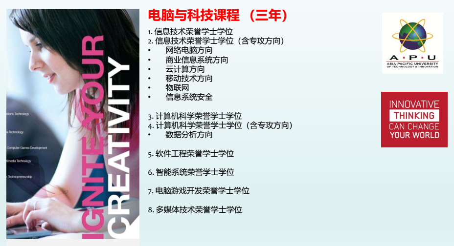 亚太科技大学(asia pacific university of technology &innovation) ,简称apu, 始建于1993,亚太科技大学的教育以科技为核心,提供了多层次的教育模式。亚太科技大学的目标是通过学校的教育项目,培育和鼓励创新意识,培养学生成为能够学习、领悟并且能够以不同的角度独立思考的人才。亚太科技大学的所有学术项目都被马来西亚高等教育部所认证,学校的教育资质是通过马来西亚学术资格鉴定中心(mqa)的鉴定和认证的。毕业证书受到中国教育部以及全球认证。