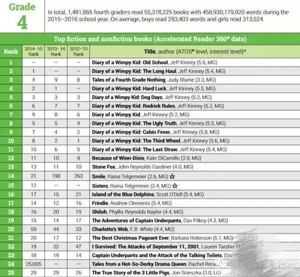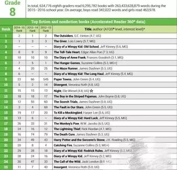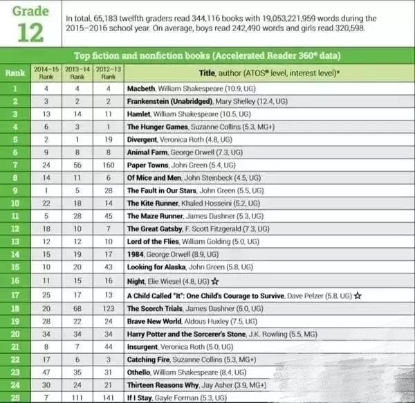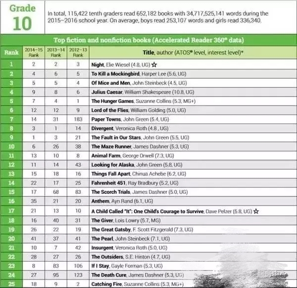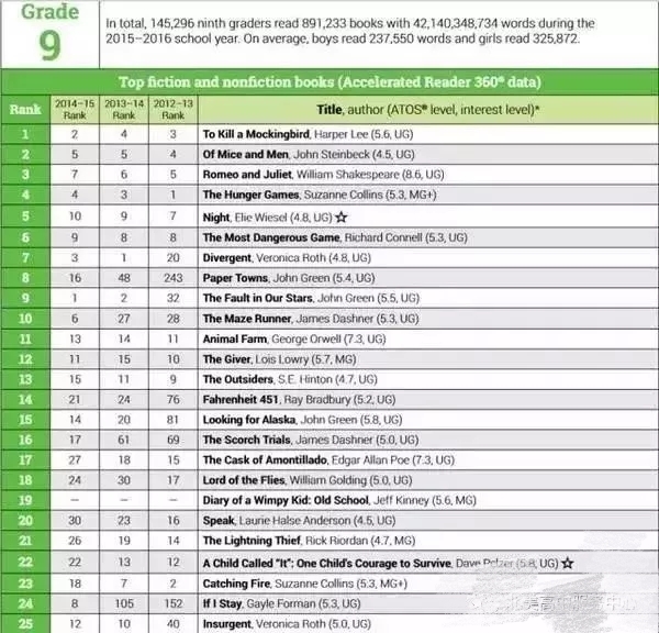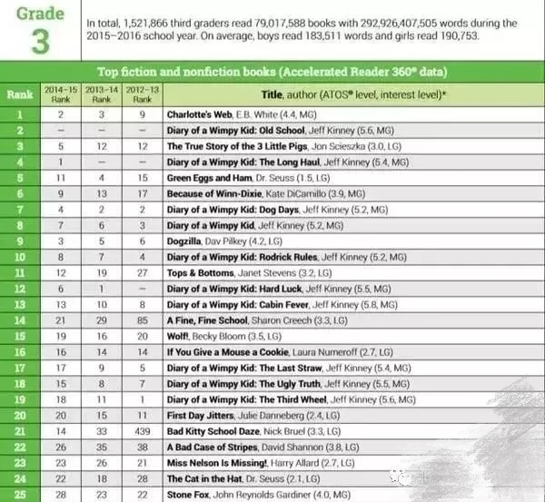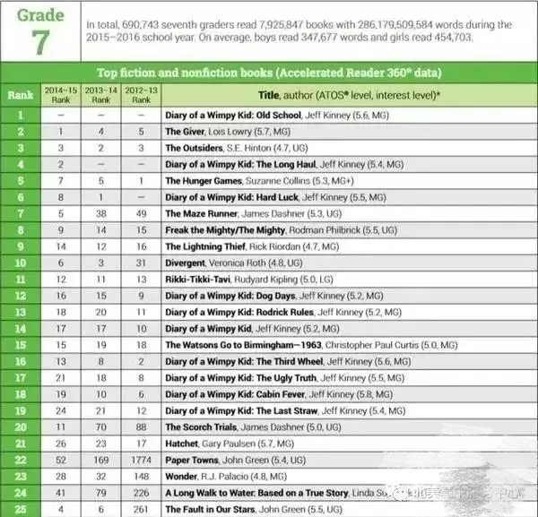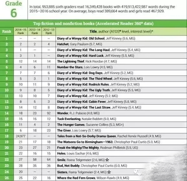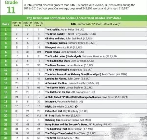 以下是1-12年级学生的热门阅读书籍排行: