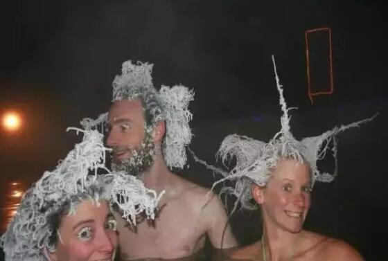 但是在育空的塔基尼温泉,零下40度又怎样,人们享受着冰与火之歌,头发和胡子都冻成这样了,还乐呵乐呵的!