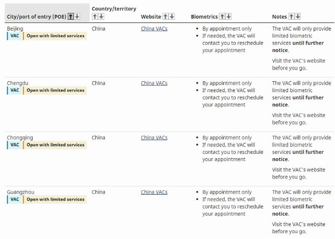 七、在中国的大部分签证申请中心(VACs)已经重新开放生物识别信息的采集