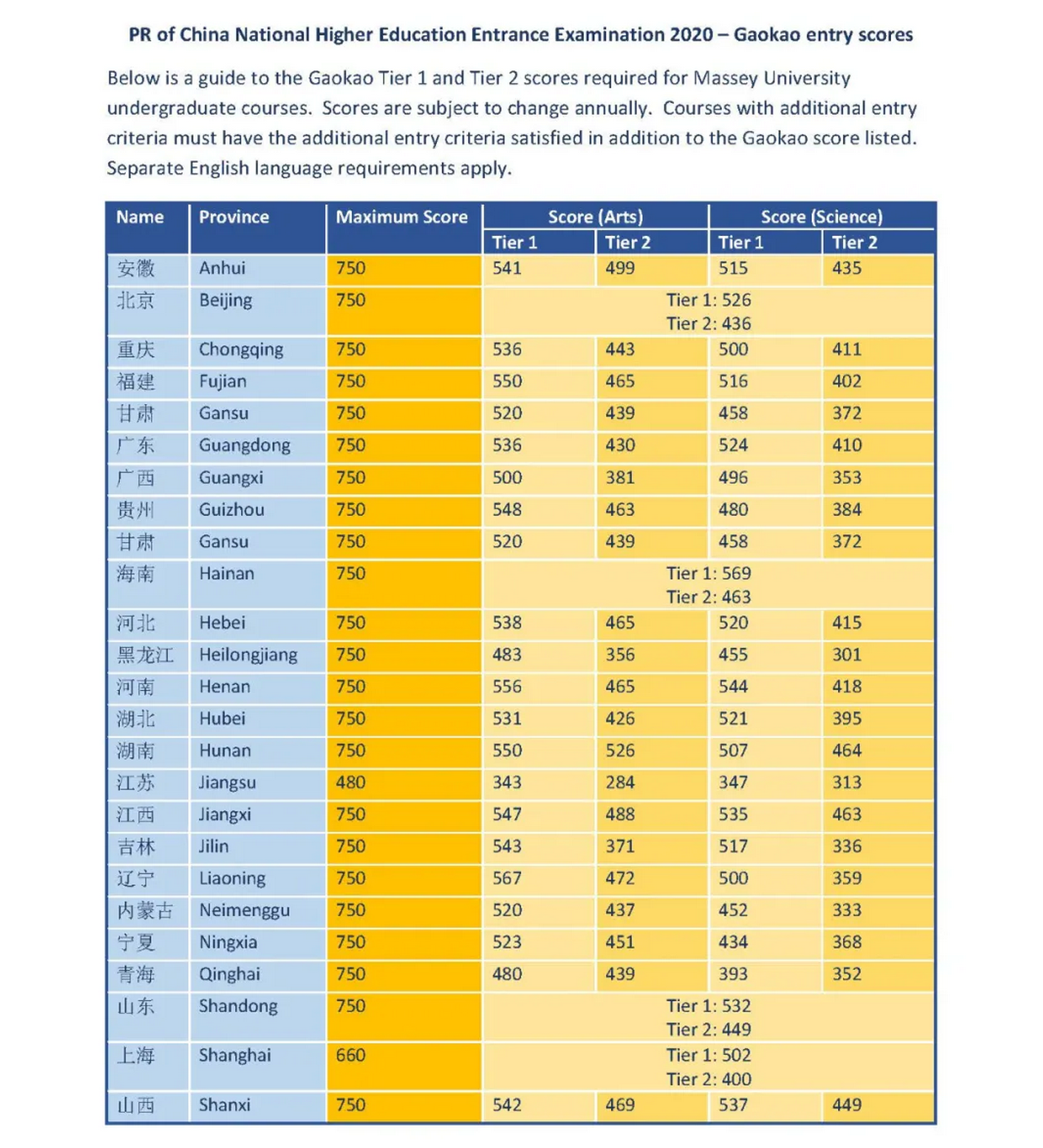 注:特殊专业可能对雅思成绩要求不同,且有额外录取要求的课程,需同时满足高考成绩要求和额外的录取要求。
