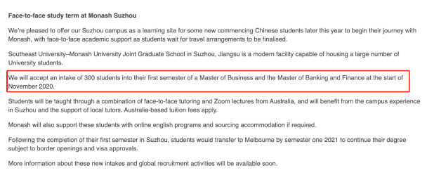 针对目前澳洲的情况,如果你是今年的新生,并且正好是 Master of Business或Master of Banking an Finance专业,来苏州线下上课也不妨是一种好办法。