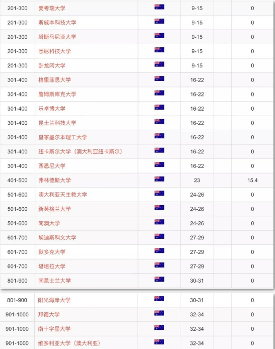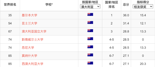 而在今年的排名中,全球前100的学校里,澳洲上榜了7所,